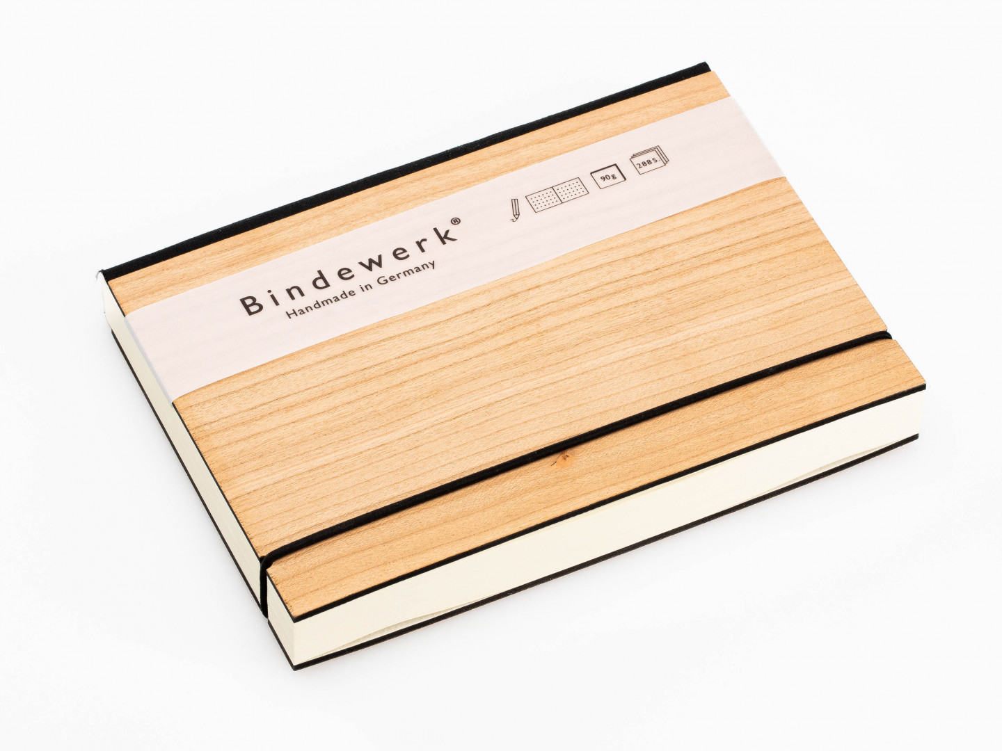 Notatbok fra Bindewerk med perm av tre. 90 grams papir med "dots". 288 sider.