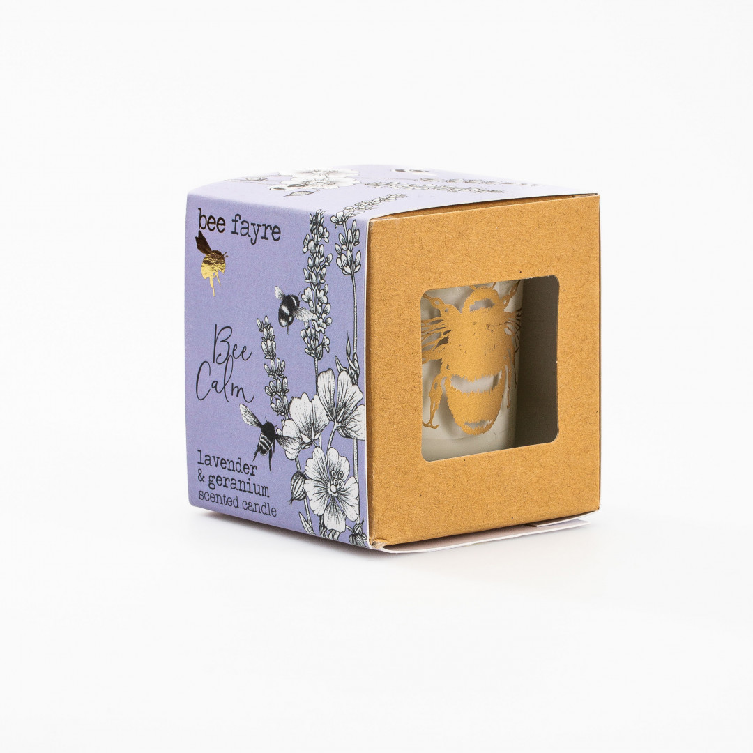 Bee Calm lavender & geranium er duftlys av naturlig plantevoks og med rene eteriske oljer.