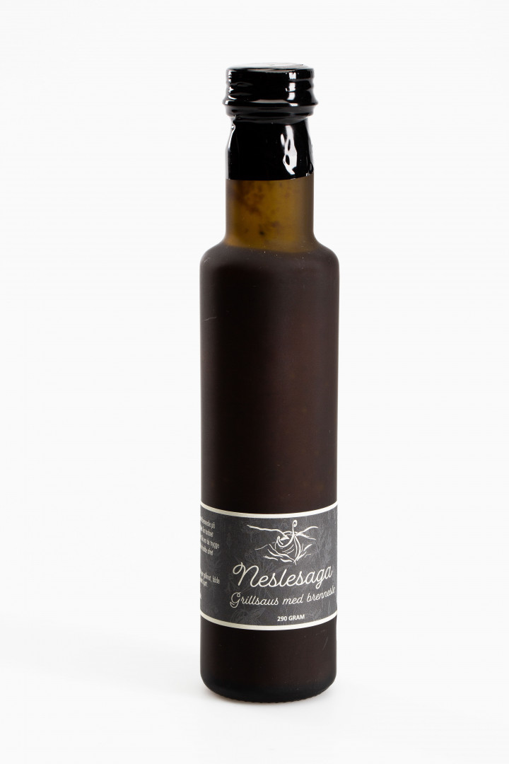 Grill/stekesaus med brennesle. Basert på en tomatsausbase med brennesle og andre krydderurter. Egner seg godt til marinering av kjøtt. kan brukes på pizza. som dipp blandet med rømme eller som "glace".