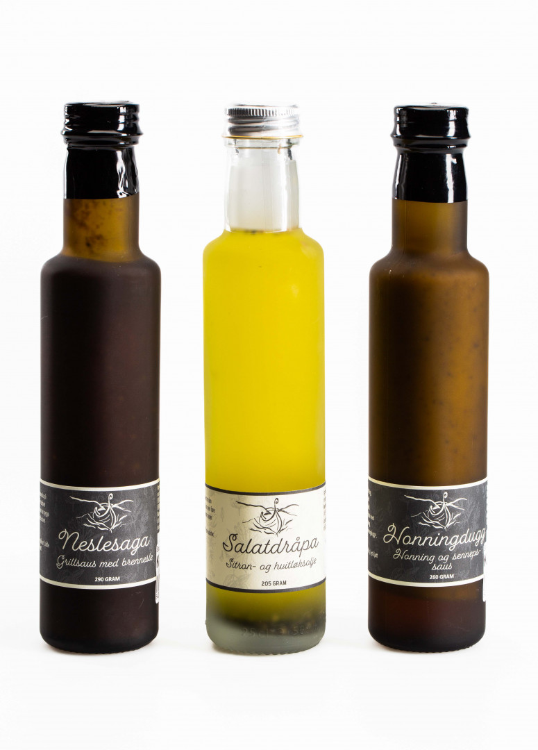 Salatdråpa er en del av den Norrøne serien til Engebretsen AS. Med sitron. ramsløk og hvitløk er oljen et friskt innslag i de fleste salater.